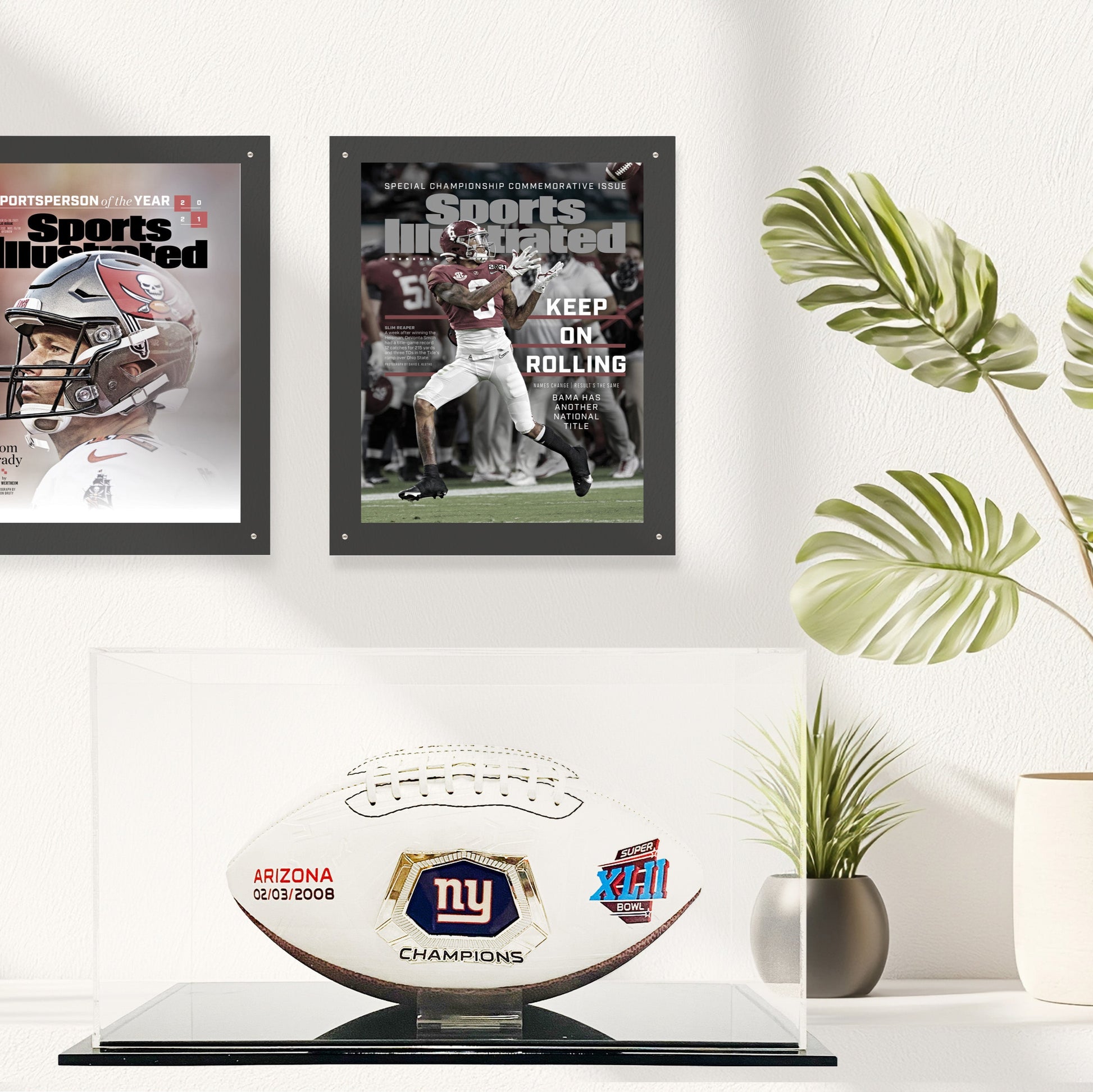 Showcase your cherished football in style with our Football Display Case. Crafted from premium 100% Acrylic, this sleek and modern display case offers UV protection, preserving your memorabilia with elegance and clarity. Perfect for displaying your memorabilia.